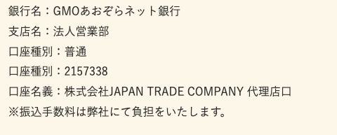 原価のお振込先について、毎朝経理部がチェックして確認をしておりますので、基本的にはお振込後お振込後の、ラインへのご連絡は不要です。着金されているかどうかご不安ば場合にのみ、振込履歴(スクリーンショット、振込レシートなど)と一緒にご希望者様のみご連絡くださいませ。