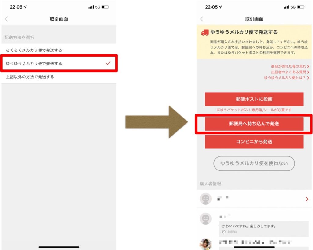 まずはAppSheet売れた商品のページをご確認いただき発送方法を確認して選択して下さい