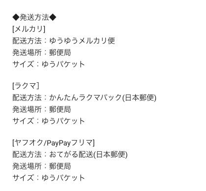 商品ページに発送方法が記載されているので、こちらをもとに発送の設定を行います。
