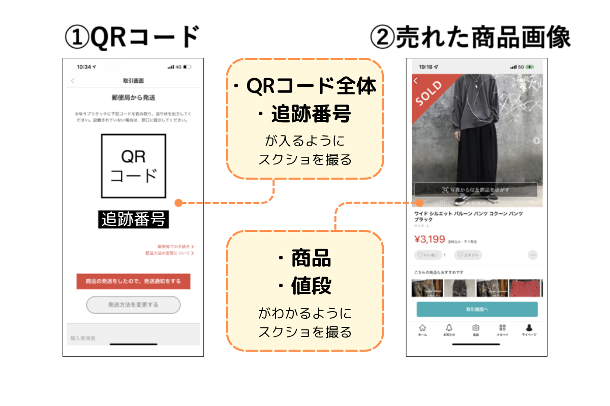 QRコードと売れた商品の画像を必ず保存しておいてください。発送依頼に必要です。