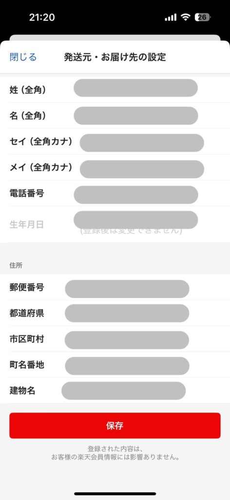 ラクマアプリを使って初めて出品する際は画像のような本人確認情報の入力画面が出てきます。これは毎回出るものではなく、ラクマで初めて出品する際にのみ表示されます。