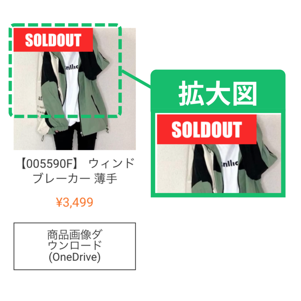 「SOLD OUT」は在庫がなくなった商品に付くバッチです。