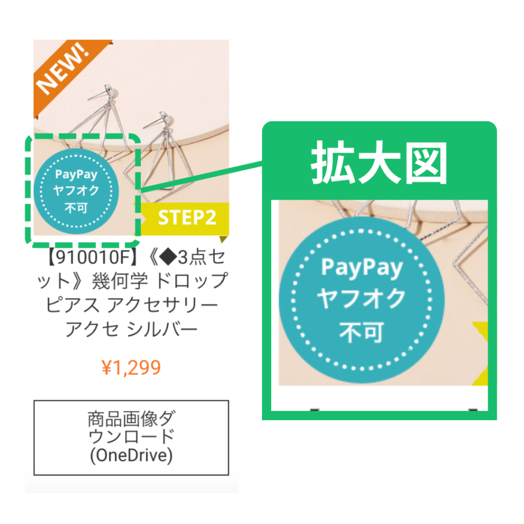 「Paypay ヤフオク不可」は「Paypayフリマ」「ヤフオク」には出品できない商品に付くバッチです。