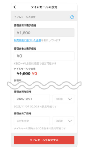 メルカリでは、出品者向けに「タイムセール」機能が提供されています。これは、一定期間限定で商品に割引を設定できる機能で、商品が目立ちやすくなり、売れやすくなるのが特徴です。